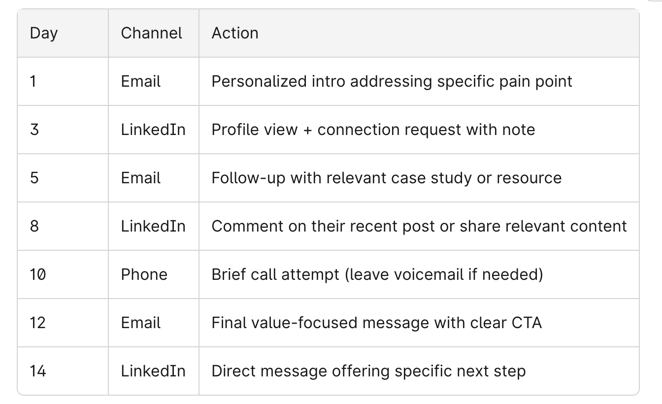 - Run parallel email + LinkedIn cadences