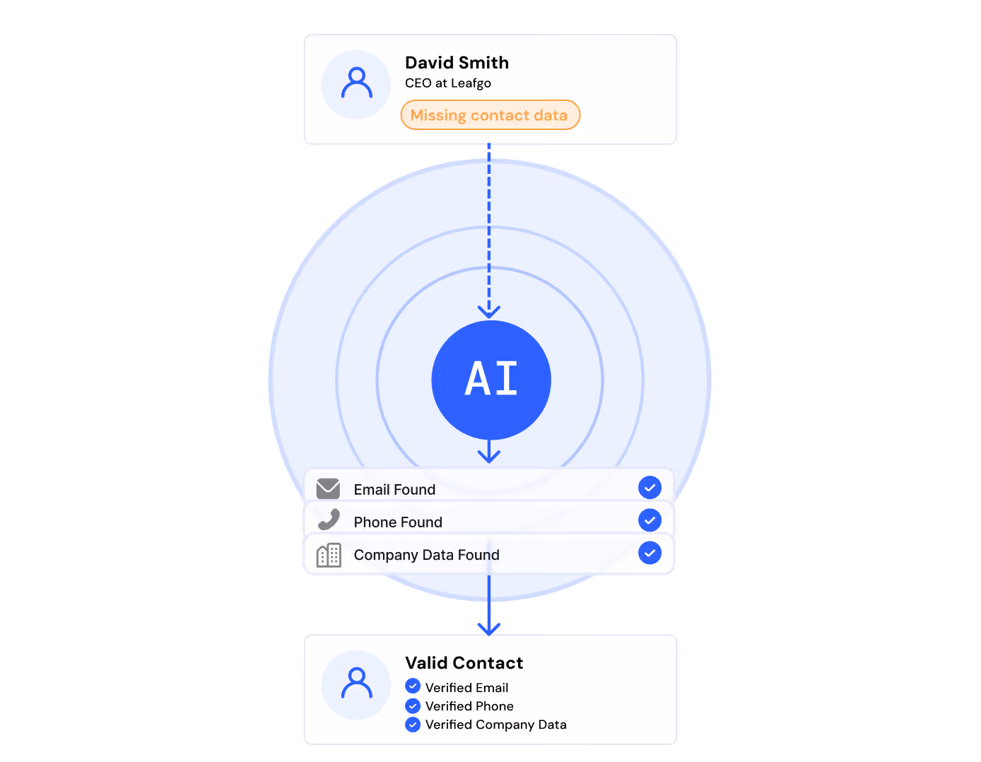 Leadspicker cascades through multiple data providers for each contact. If the first provider doesn't have a verified email or phone number, the next one picks up. This maximizes coverage and minimizes bounces — without per-contact credit costs.